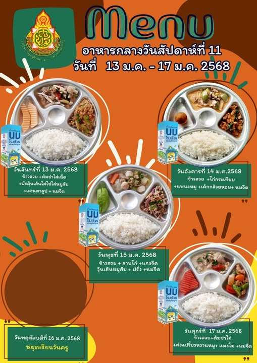 รายการอาหารกลางวัน สัปดาห์ที่ 11 วันที่ 13 ม.ค.- 17 ม.ค. 2568