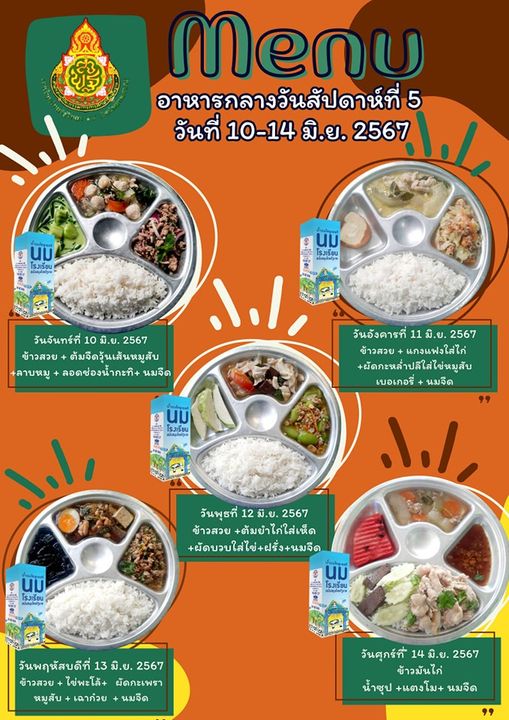 รายการอาหารกลางวัน สัปดาห์ที่ 5 วันที่ 10 -14 มิถุนายน 2567