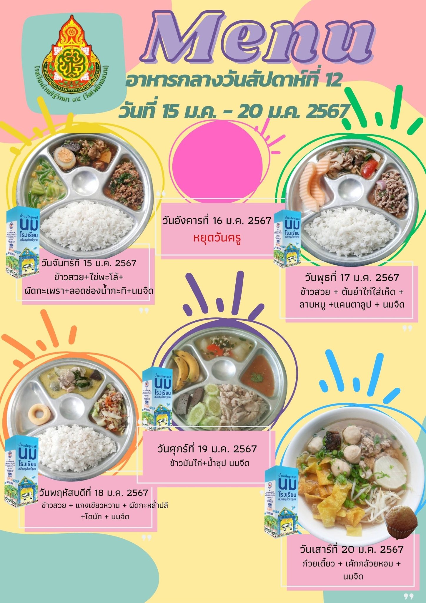 รายการอาหารกลางวัน สัปดาห์ที่ 12 วันที่ 15-20 มกราคม 2567