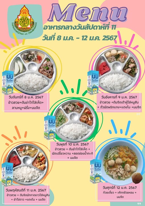 รายการอาหารกลางวัน สัปดาห์ที่ 11 วันที่ 8-12 มกราคม 2567