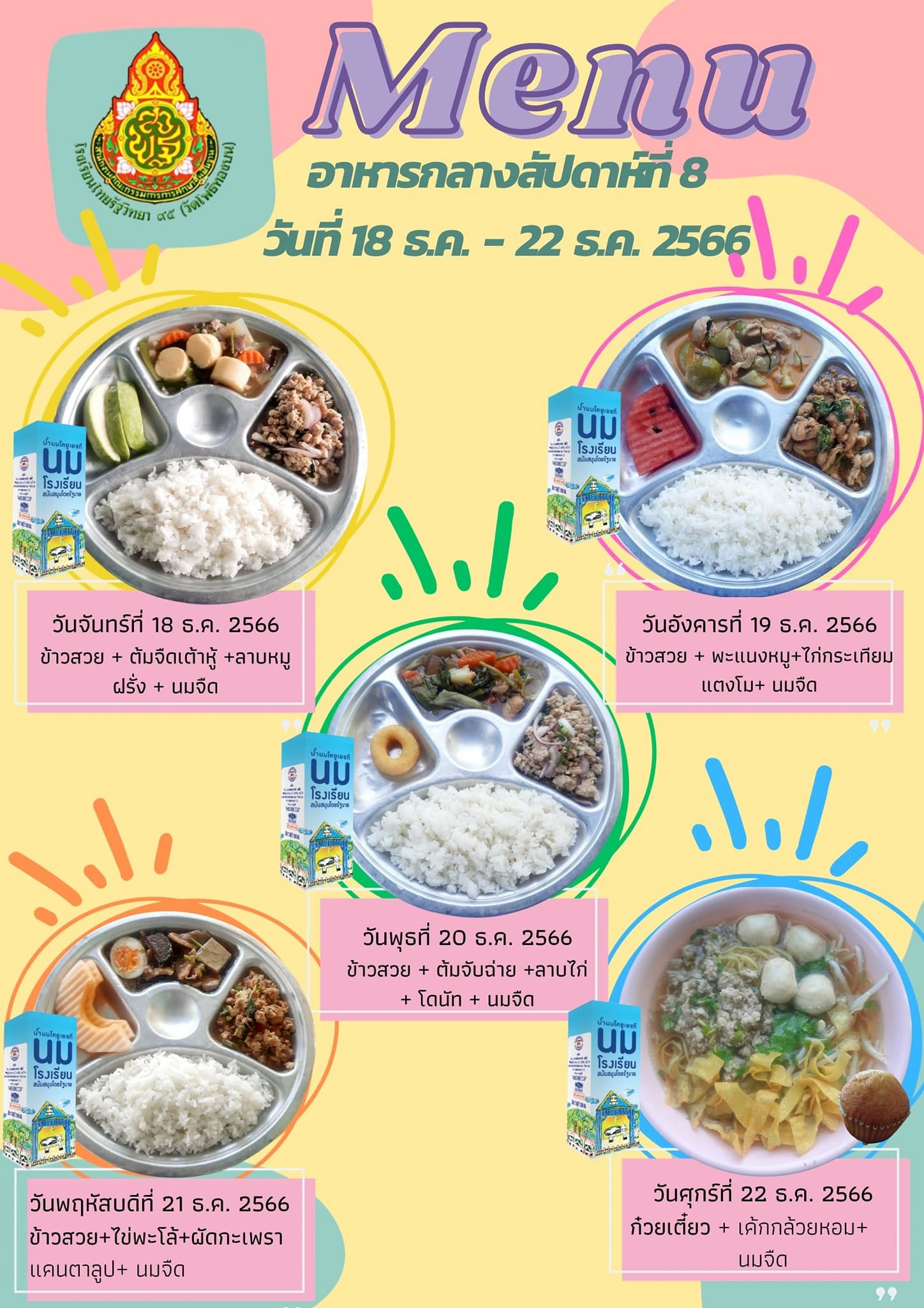 รายการอาหารกลางวัน สัปดาห์ที่ 8 วันที่ 18-22 ธันวาคม 2566