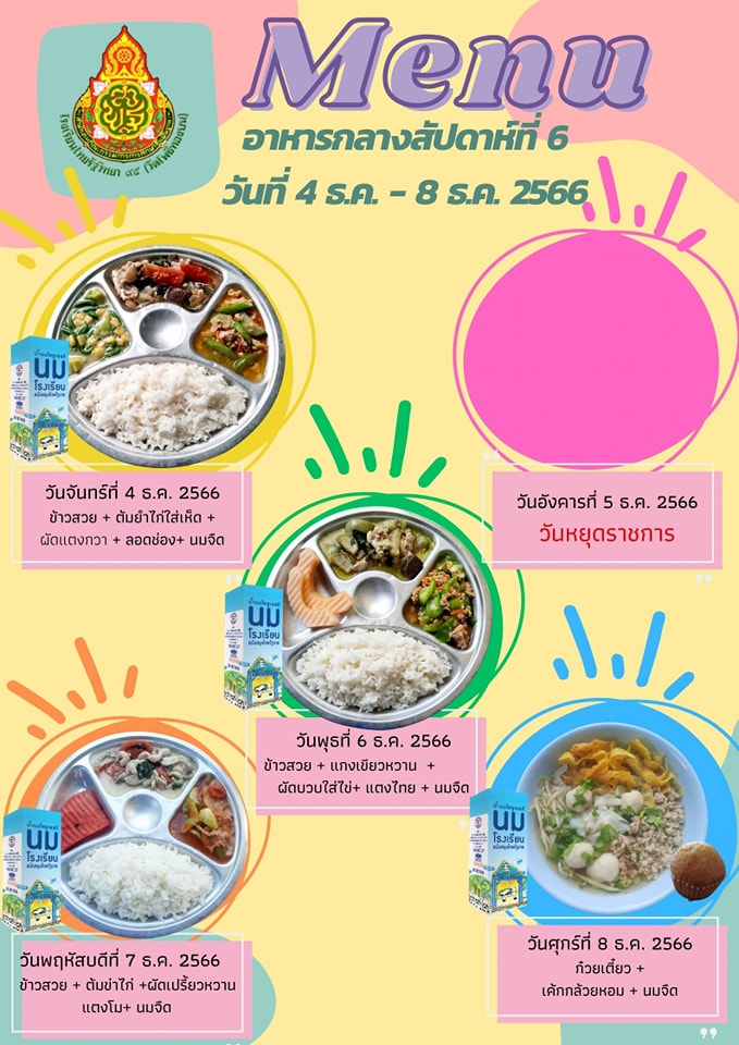 รายการอาหารกลางวัน สัปดาห์ที่ 6 วันที่ 4 - 8 ธันวาคม 2566