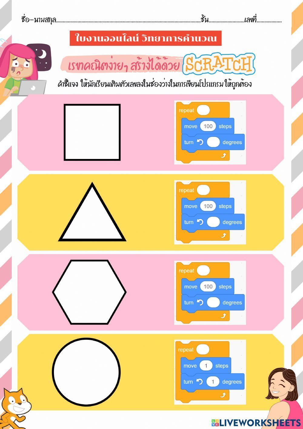 ใบงานเรขาคณิตสร้างด้วย Scratch