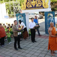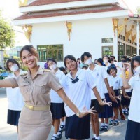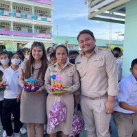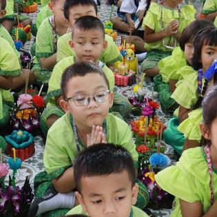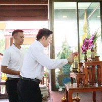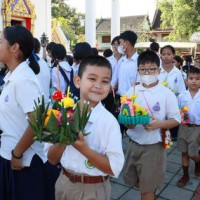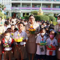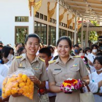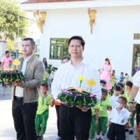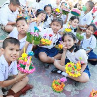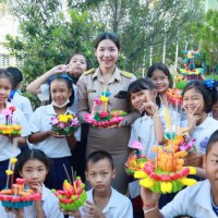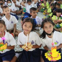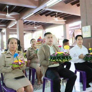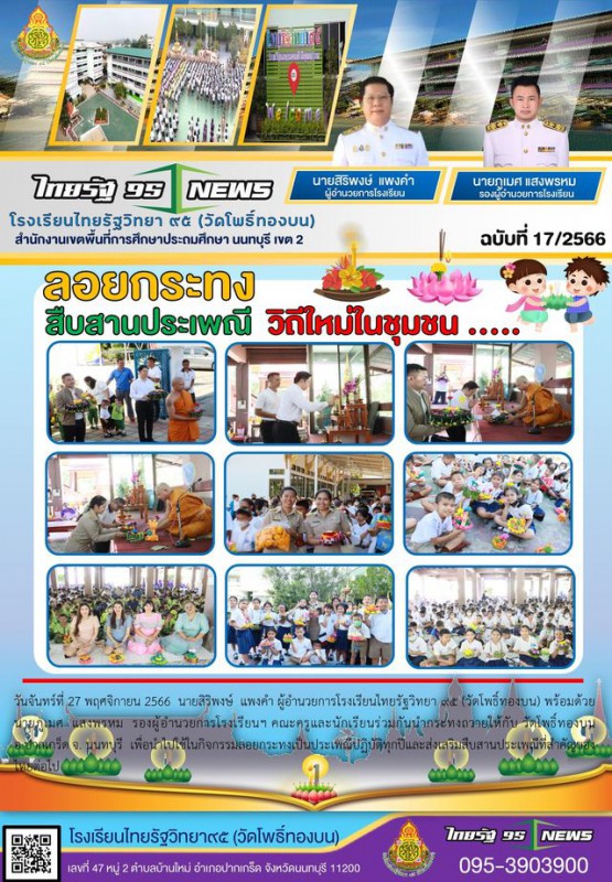 นายสิริพงษ์ แพงคำ ผู้อำนวยการโรงเรียนไทยรัฐวิทยา ๙๕ (วัดโพธิ์ทองบน) พร้อมด้วยนายภูเมศ แสงพรหม รองผู้อำนวยการโรงเรียนฯ คณะครูและนักเรียนร่วมกันนำกระทงถวายให้กับ วัดโพธิ์ทองบน