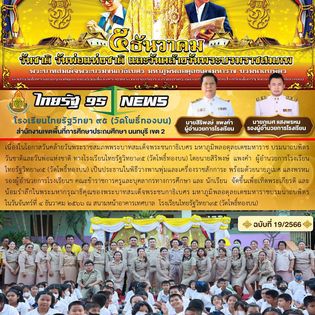 เนื่องในโอกาสวันคล้ายวันพระราชสมภพพระบาทสมเด็จพระชนกาธิเบศร มหาภูมิพลอดุลยเดชมหาราช บรมนาถบพิตร วันชาติและวันพ่อแห่งชาติ ทางโรงเรียนไทยรัฐวิทยา๙๕ (วัดโพธิ์ทองบน) โดยนายสิริพงษ์ แพงคำ ผู้อำนวยการโรงเรียนไทยรัฐวิทยา๙๕ (วัดโพธิ์ทองบน) เป็นประธานในพิธีวางพานพุ่มและเครื่องราชสักการะ พร้อมด้วยนายภูเมศ แสงพรหม รองผู้อำนวยการโรงเรียนฯ คณะข้าราชการครูและบุคลากรทางการศึกษา และ นักเรียน จัดขึ้นเพื่อเทิดพระเกียรติ และ น้อมรำลึกในพระมหากรุณาธิคุณของพระบาทสมเด็จพระชนกาธิเบศร มหาภูมิพลอดุลยเดชมหาราชบรมนาถบพิตร ในวันจันทร์ที่ ๔ ธันวาคม ๒๕๖๖ ณ สนามหน้าอาคารเทศบาล โรงเรียนไทยรัฐวิทยา๙๕ (วัดโพธิ์ทองบน) |