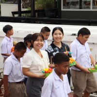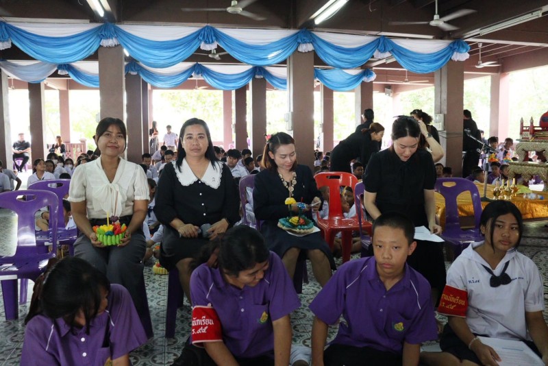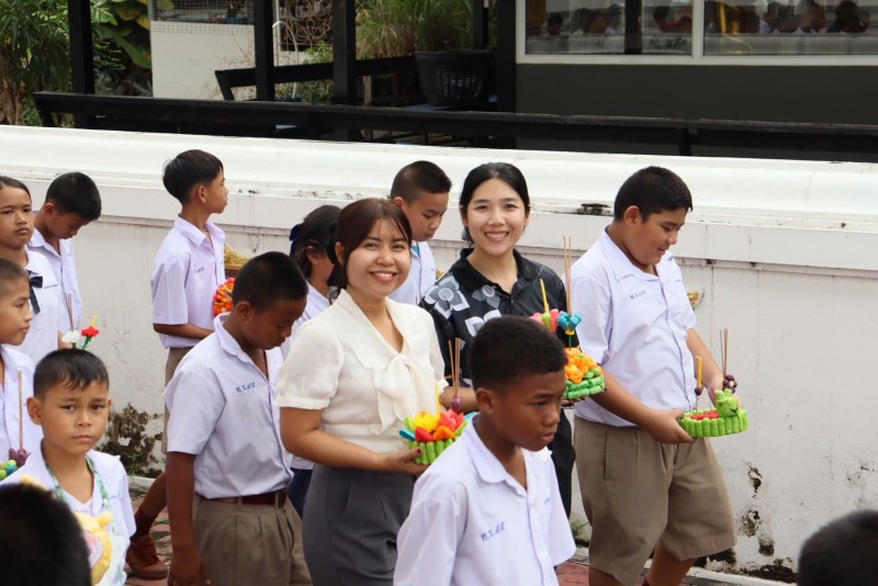 คณะครูและนักเรียนร่วมกันนำกระทงถวายให้กับ วัดโพธิ์ทองบน อ.ปากเกร็ด จ. นนทบุรี