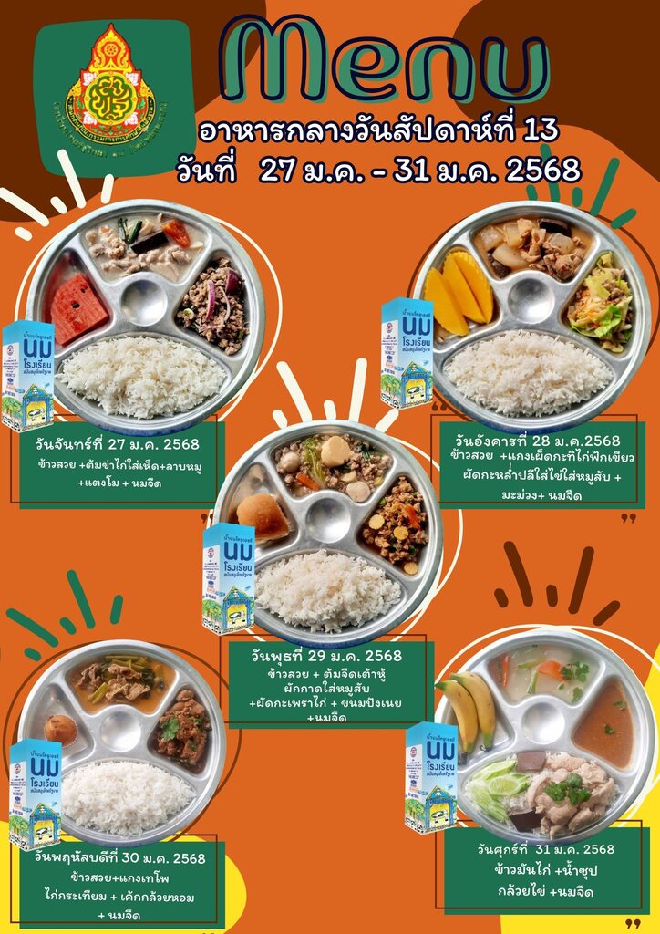 รายการอาหารกลางวัน สัปดาห์ที่ 13 วันที่ 27 ม.ค.- 31 ม.ค. 2568