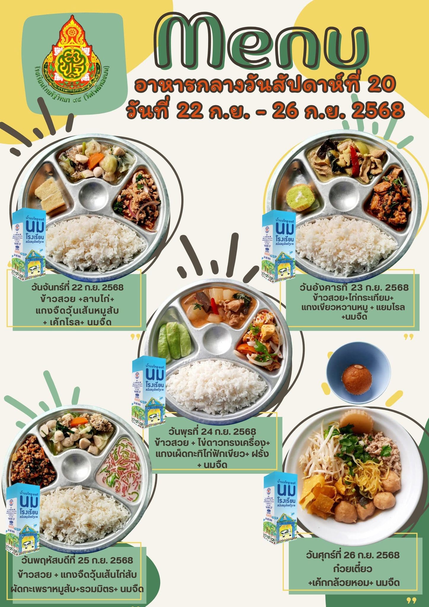 รายการอาหารกลางวัน สัปดาห์ที่ 20 วันที่ 22 ก.ย.- 26 ก.ย. 2568